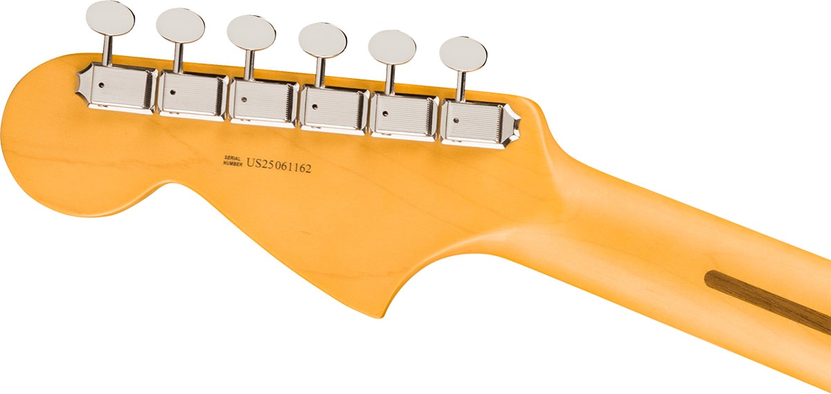 ヴィンテージの魅力とモダンな性能を融合したジャガー。パンチと煌めきのある深い音色を生む’65 JaguarRピックアップ、快適な演奏性のModern “C”ネック、安定したチューニングのClassicGear?チューナーを搭載。美しいヴィンテージ仕上げも特徴で、フェンダー黄金期の魂を受け継ぎ現代のプレイヤー向けに進化したモデルです。