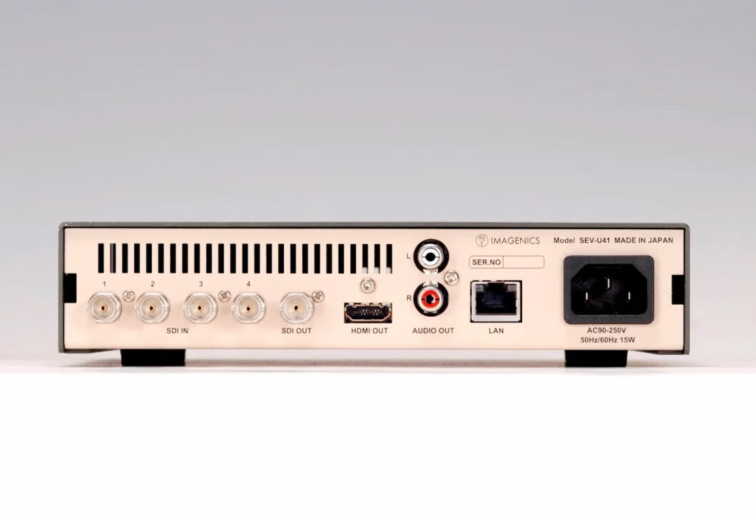 SEV-U41は、SMPTE規格に準拠したUHDフォーマットまで対応するHD/3G-SDI信号の4系統入力をHDMI信号へ変換出力する信号変換器。4系統の 非同期のHD/3G-SDI信号の入力が可能です。