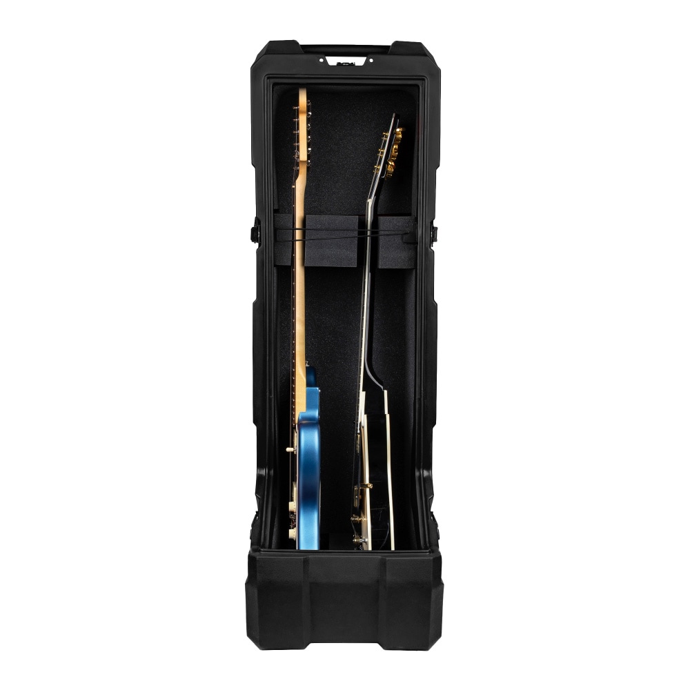 2本のエレキギターを収納可能なケース。ステージラックとしても使用できます。