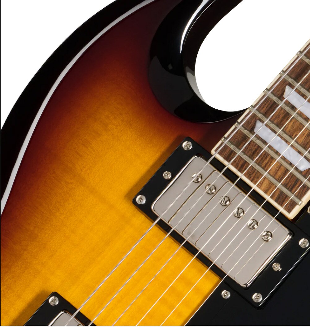 手頃な価格でありながら高品質なこのギターは、上達の妨げにもならず、質の高いギターを求める初心者から中級者までを対象としています。SGトリビュート・プラスは、マホガニー材を使用したクラシックなギブソンSGシェイプのボディを採用しています。