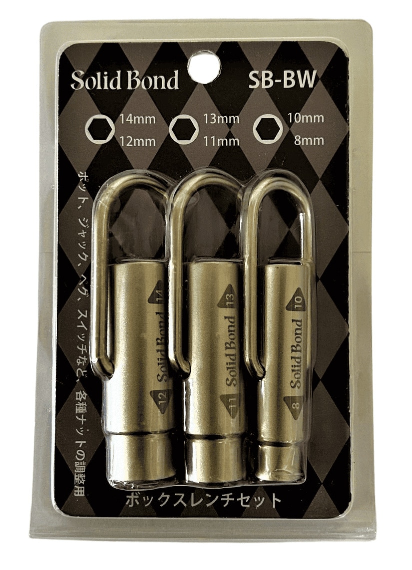 このセットには、ギターで頻繁に使われる8mm/10mm、11mm/13mm、12mm/14mmの3種類のレンチが含まれており、持ち運びにとても便利です。ギター本体には、ジャックやポット、ペグなど、様々な場所に異なるサイズのナットが使われていますが、長くギターを使っていると、これらのナットが緩むことがあります。ナットが緩んだままだと、ジャックやポットに接続されている配線が断線し、正常に音が出なくなる原因になることも。また、ペグのナットが緩むと、チューニングが不安定になったり、不要なノイズが発生したりすることもあります。そのため、定期的にナットの緩みをチェックすることをおすすめします。この「SB-BW」の特長は、レンチの中が空洞になっている点です。これにより、突起部が長いパーツでも干渉しにくく、スムーズに作業ができます。ギターのメンテナンス工具として、ぜひ一つ持っておきたいアイテムです。