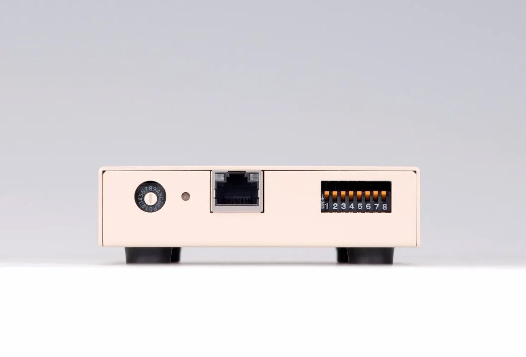 10BASET-T、100BASE-TX(自動判定)RJ451系統。(工場出荷設定時のアドレスはIP:192.168.2.222PORT:01300です。)