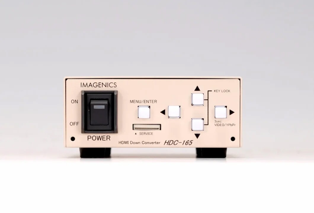 HDC-165 はHDMI およびDVI 信号をコンポジットビデオ信号またはコンポーネントビデオ信号に変換するダウンコンバーターです。