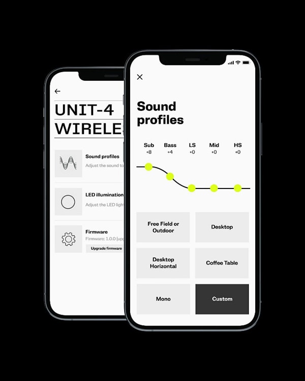 プリセットのサウンドプロファイルを選択するか、UNIT-4 モバイルアプリでカスタマイズ可能な5バンドEQを細かく調整できます。
