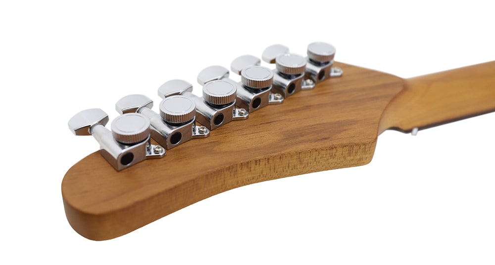 ローステッドメイプルの色味はやや黒め(最廉価のibanezやbacchusの焼き色って薄くないですか?)。