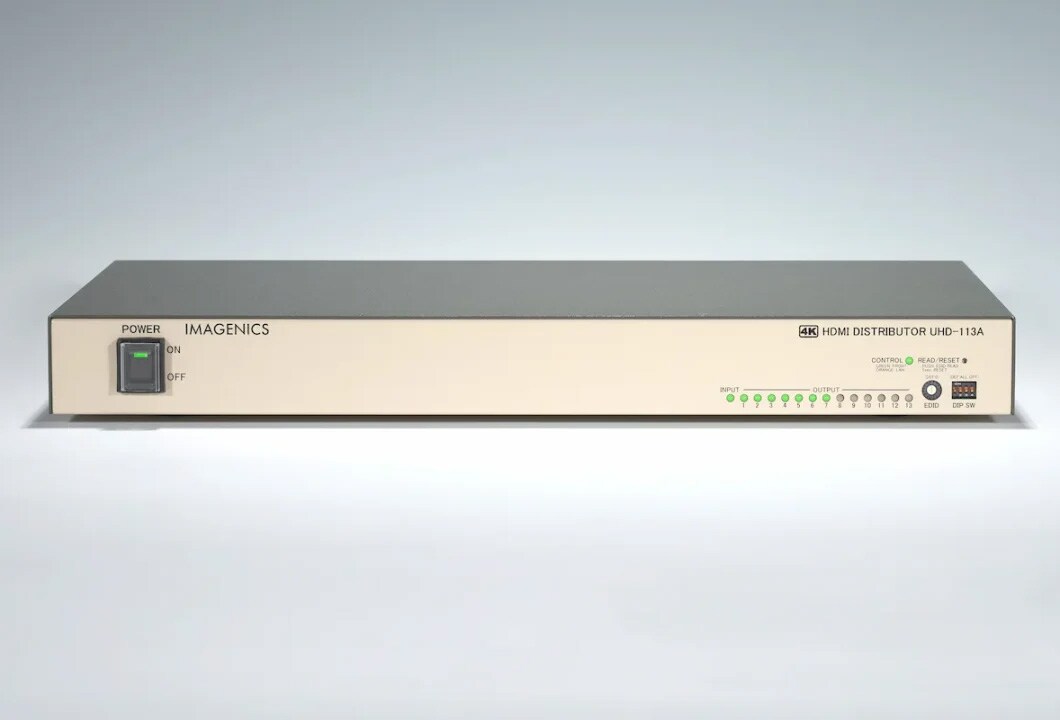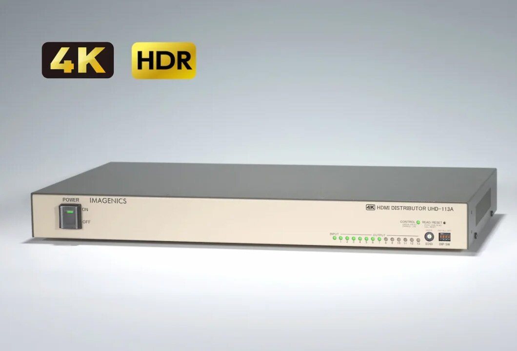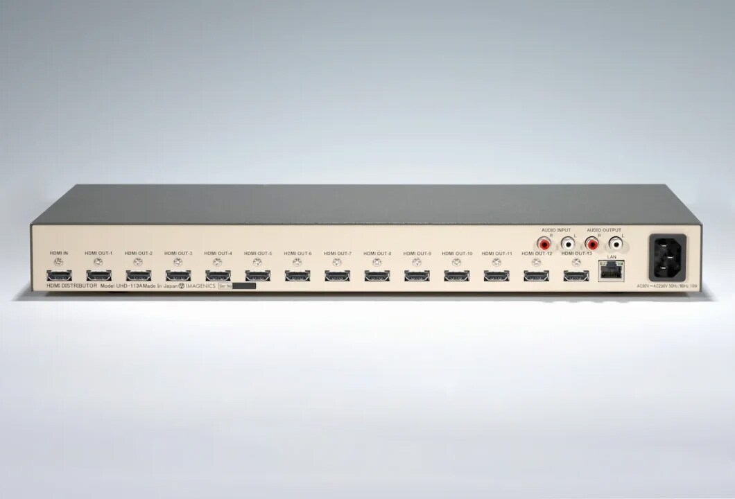 4K解像度のHDMI 信号に対応した1入力13出力の多機能型HDMI分配器。出力チャンネルごとに、4K → FHD ダウンコンバート機能とカラースペース変換を搭載します。
