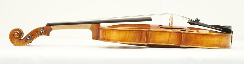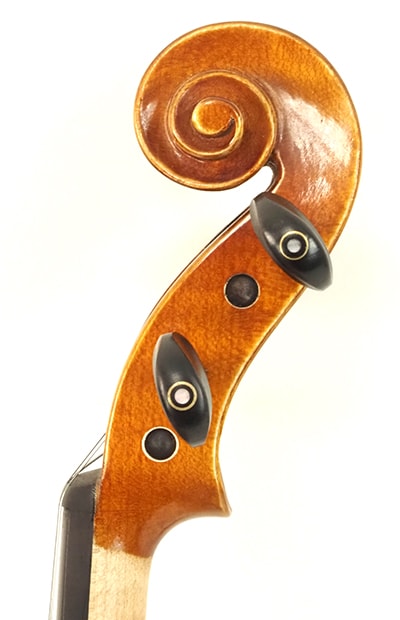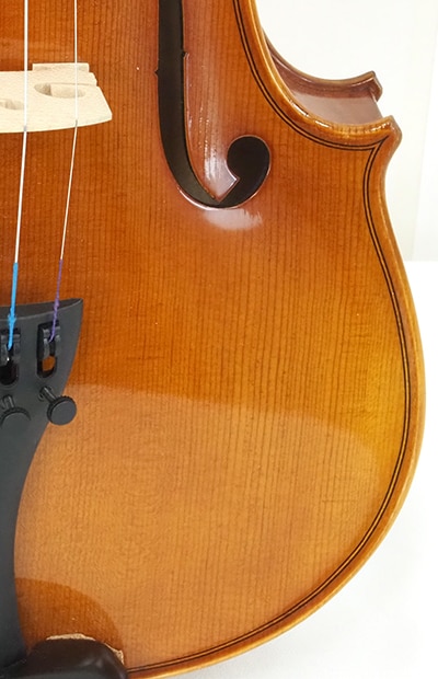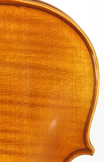 表板、側板、裏板、細部にわたり、欧州製新作バイオリンを思わせる艶のあるニスで仕上げを行いました。