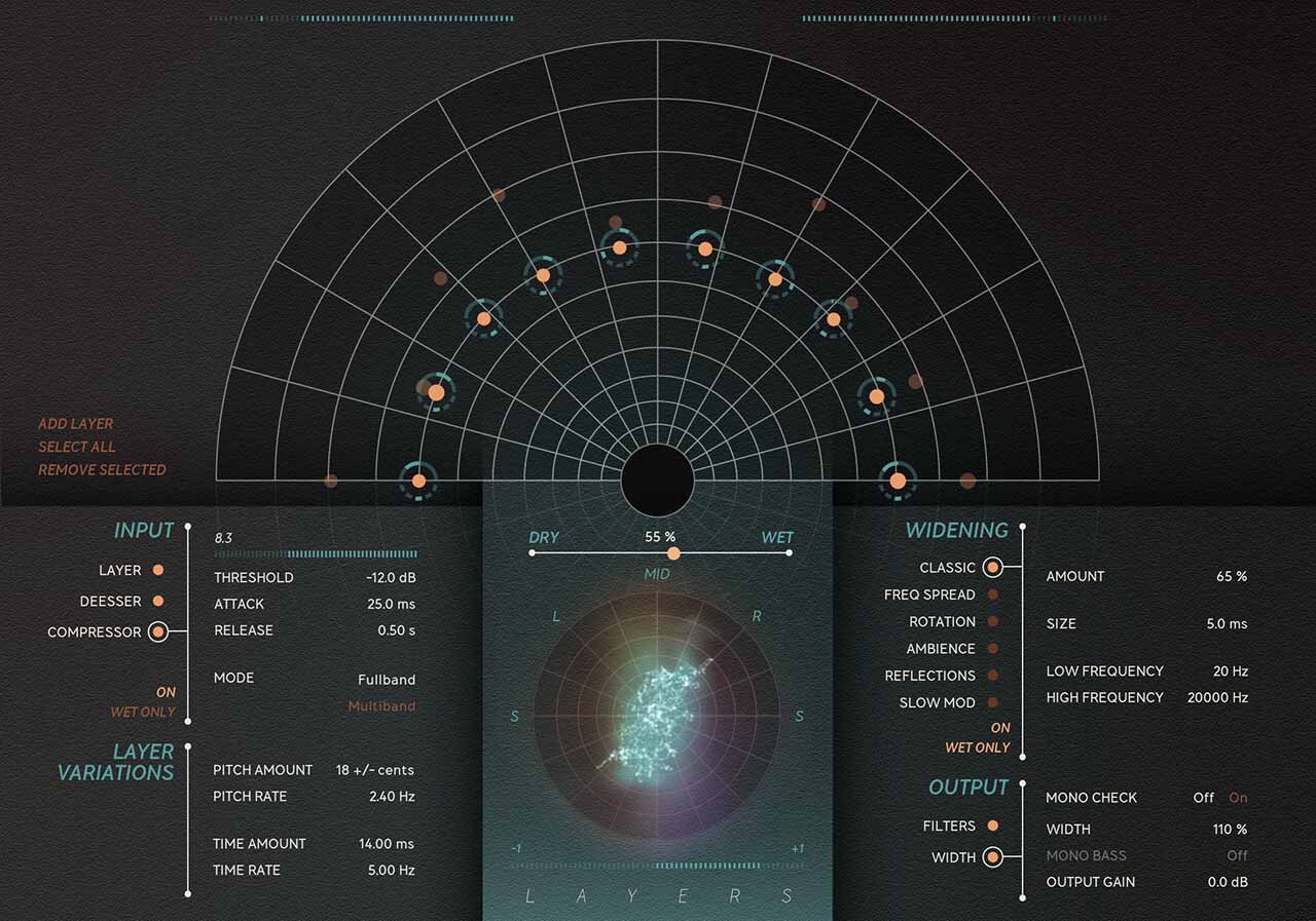 直感的なダブリングの制御、オーガニック モジュレーションの素早いマクロ制御、ワールドクラスのワイドニング アルゴリズム、フルバンドおよびマルチバンド コンプレッション、ディエッシング、オクターブ効果... レイヤーはこれらすべてを提供し、よくある面倒なことやハングアップは一切ありません。