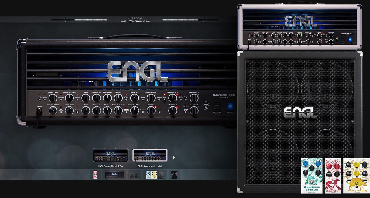 Savage Mark II アンプ ヘッドの 120W および 60W バージョンの忠実なモデル、5 つの ENGL キャビネット、4 つのペダル、スタジオ エフェクトを備えたこの公式ライセンス取得済みの Amp Room スイートでは、