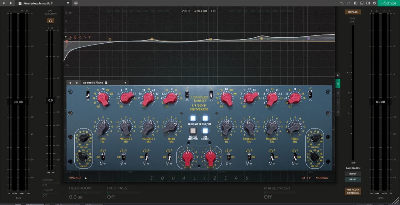 Trident A-Range、Chandler Limited Curve Bender、その他バイブスに富んだ Softube EQ をロードすれば、そのプラグインの真価を余すことなく発揮できるだけでなく、ビンテージ EQ 特有のカーブを視覚的に表示したり、最大 20 バンドのモダンカーブと組み合わせたり、周波数成分を表示したり、ダイナミック EQ 機能を使用したりといったことも可能です。