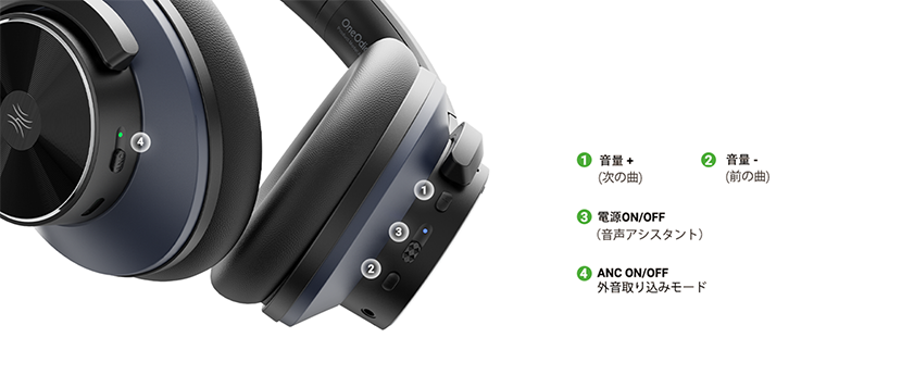 ・再生時間:ANC+Bluetooth:約40-50時間/ANCのみ:約62時間