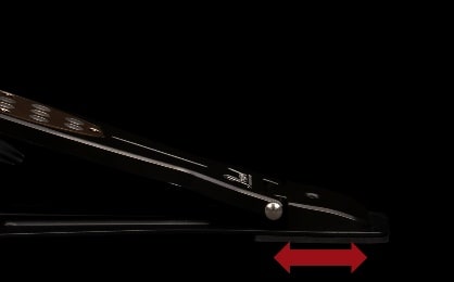 スプリングのテンションノブが緩むのを防ぐロック機構を装備。黒いノブ下のクリックロック・レバーを持ち上げることで、テンション調整が可能です。