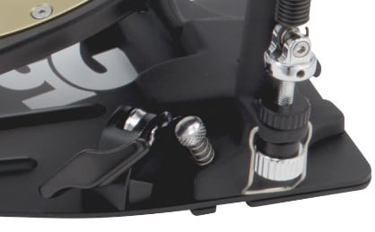 バスドラムのフープに確実に固定できる革新的なクランプシステム。上部のナットでしっかりと固定し、演奏中のバスドラムの揺れを軽減。フロアプレート横のハンドルボルトで開閉が可能で、ペダルの着脱も簡単です。
