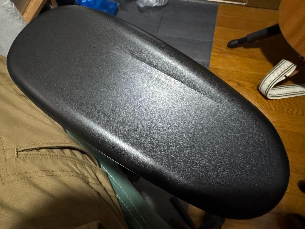 カビはアルコールで除去できるので良しとしたものの、アームレストのパット部分に約12センチほどの圧痕がついていて、これは消えそうにないですね。
