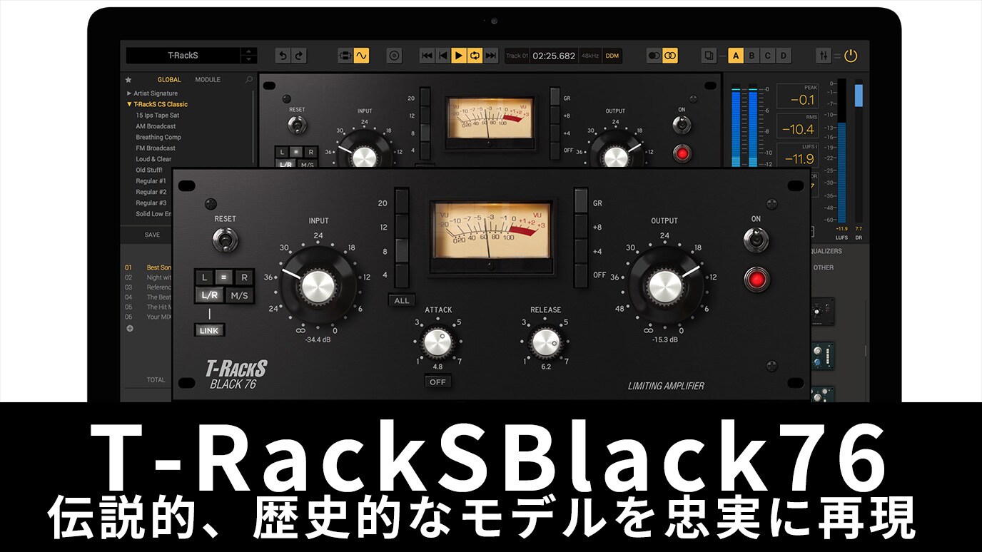 オーディオ業界で最も良く知られ、使われ、求められているFETコンプレッサー/リミッター。プロの手による名盤でこの機種を使っていない作品を探すのは難しいといわれるモデル。Black 76 Limiting Amplifierは、その伝説的、歴史的なモデルを忠実にモデリングしたプラグインです。本当に、このFETコンプレッサーをデザインした人は天才だと思います。そこに投入された知見、魔法は、先見性のある天才のみが到達できるものだといえるでしょう。
