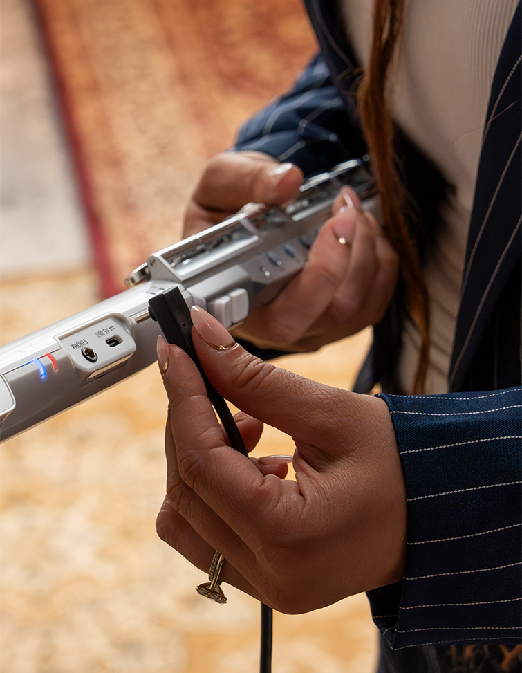 新開発のデュアル・ブレス・センサーが、プレイヤーの繊細な息づかいを自然なサウンドへと変換し、心地よい吹奏感を実現します。演奏スタイルに合わせて角度を調整できる頭部管や、直感的なオクターブ切り替えも快適な操作をサポート。さらに、リコーダーに近いBrisaモードをはじめ、フルートやトランペットなど、多様な運指モードを搭載。片手で演奏できるモードも用意し、あらゆるプレイヤーにフィットします。