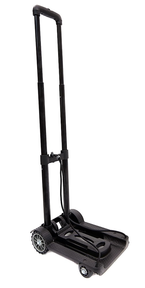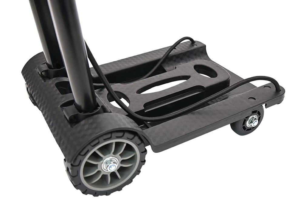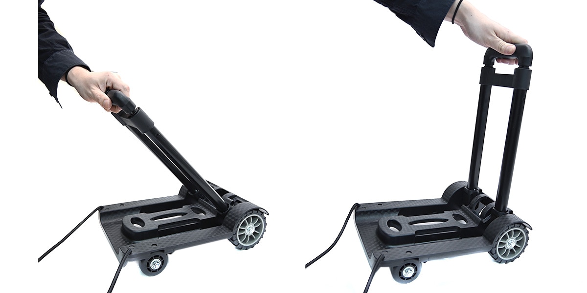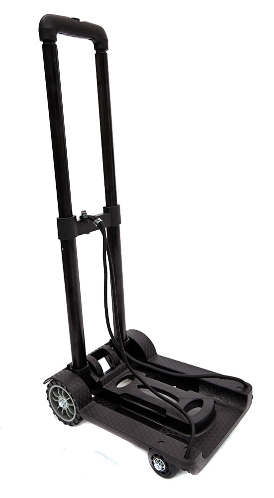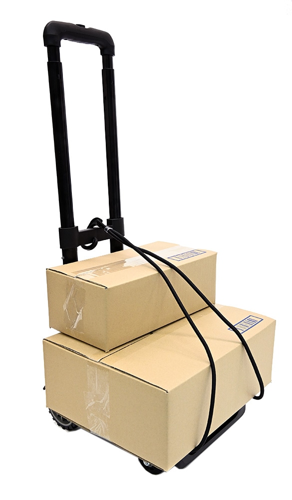 小型ながらスチール製フレームを採用し、荷物を載せた状態でも安定した運搬が可能なキャリーカートです。台座全体で荷重を支える構造のため、ラックケースやエフェクターケースをはじめ、さまざまな機材や荷物を安定して載せられます。ハンドルとフレームの剛性バランスが良く、方向転換や小さな段差の通過もスムーズ。通路やロビーなど、人の多い場所でも扱いやすい点が特徴です。付属のゴム紐で荷物をしっかり固定でき、運搬中も荷物が動きにくい構造となっています。コンパクトながら実用性に優れており、日常的な荷物の移動からイベントやスタジオ内での機材搬入まで幅広く活躍する一台です。