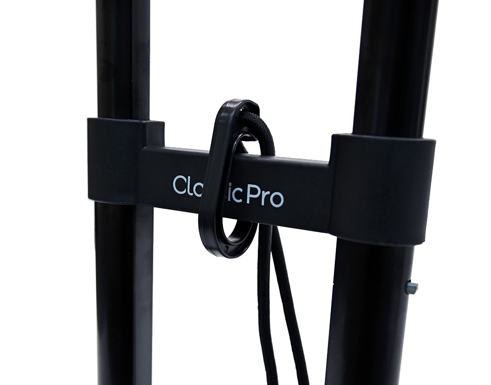 付属のゴム紐は、ハンドル下部の支柱部分にフックを掛けて荷物を固定する構造になっています。その他ご不明な点がありましたら弊社までお問い合わせください。