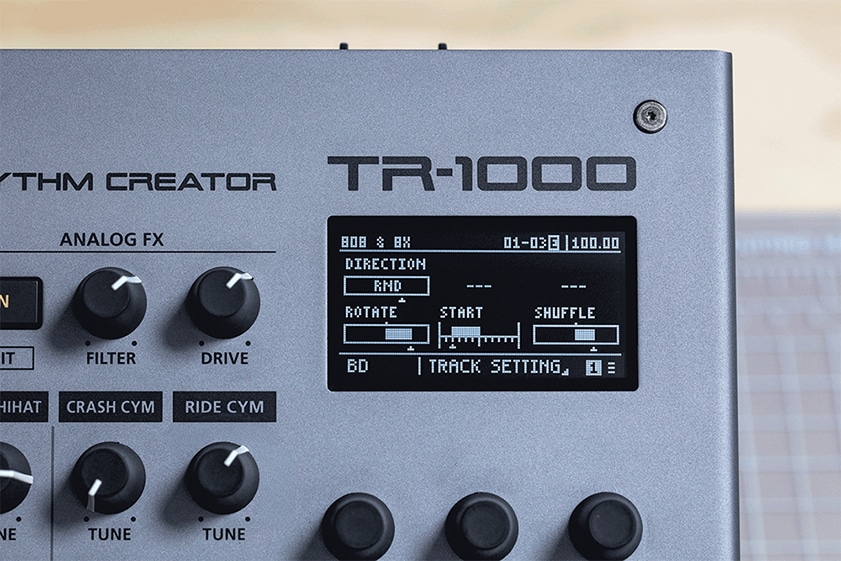 TR-1000のシーケンサーは、従来のTRスタイルのワークフローをより直感的で柔軟にすることで、一層進化しました。豊富なパターンツール、表現力を広げるコントロール、細やかなタイミング設定を活かして、リアルタイムに素早く打ち込みながら、その演奏に没頭できます。
