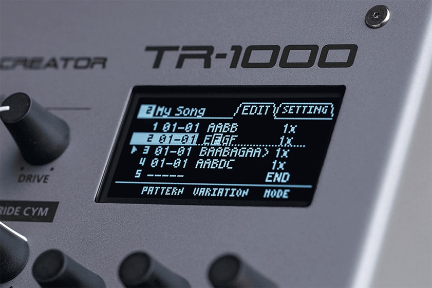 TR-1000には、複雑なアレンジをハンズフリーで再生できるソング・モードを搭載。パターンやバリエーションを自由に繋げて、セクションを繰り返し、フル・トラックを簡単に構築。複数の楽器を用いるパフォーマンスや、歌手、ハイブリッド・パフォーマーにも新たな自由をもたらします。