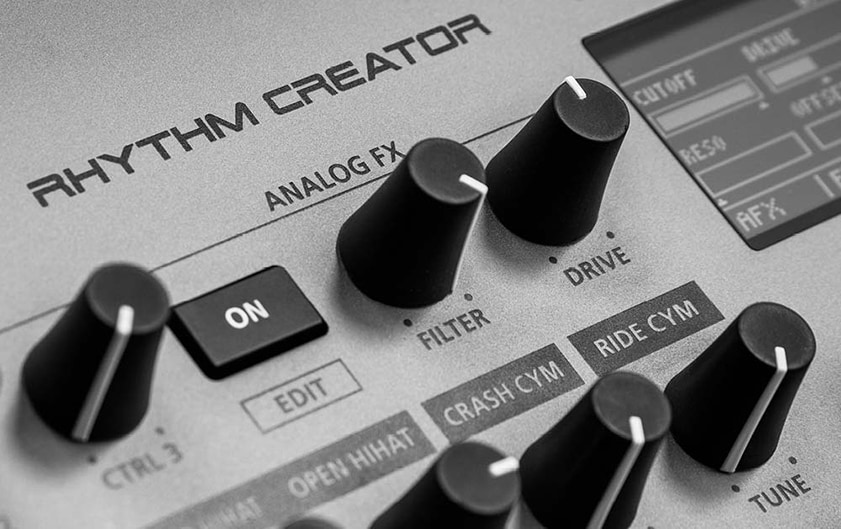 伝説的な「TR-808」や「TR-909」のDNAを受け継ぎつつ、現代のクリエイターのためにアナログとデジタルを融合。ACB技術で再現されたクラシックな温かみのあるサウンドから、FM音源やPCM音源による先進的なビートまで幅広く対応しています。プリセット音源も豊富で、音源とパターンを組み合わせているだけで数日間没頭してしまうほど。サンプリングも可能なので、自分だけの音作りが楽しめるほか。音色やエフェクトの設定も直感的に操作しやすく、TR-808やTR-909を実機で使ったことがなくても扱いやすいと感じました。
