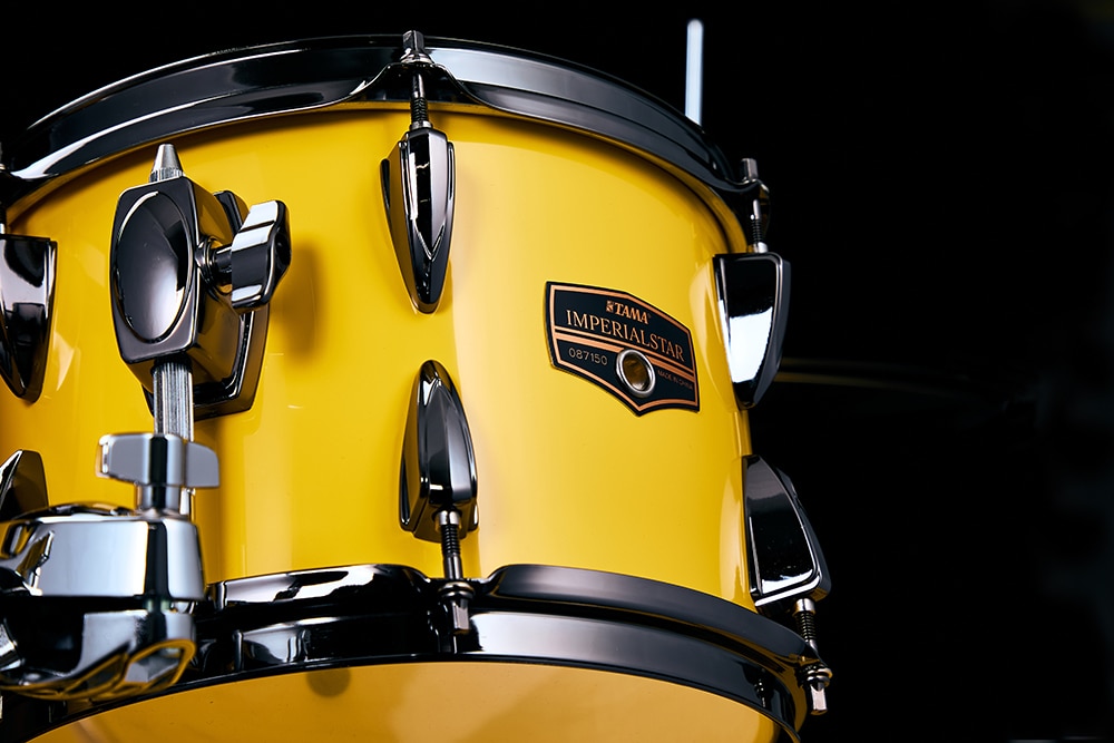ドラムシェルには鮮やかな“エレクトリック・イエロー”カバリングフィニッシュとブラックニッケルパーツを採用。さらに、Imperialstarシリーズならではの信頼性と耐久性を備えたハードウェア一式が付属します。