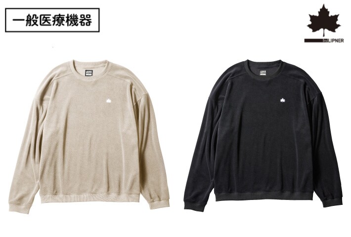 自らの体温による遠赤外線を輻射させる特殊繊維「リゲインテック」を使用したリカバリーウェアシリーズから、なめらかで優しい肌ざわりが特長のベロア素材のスウェットが登場。
