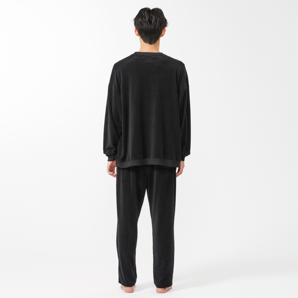 なめらかで優しい肌ざわりが特長のベロア素材を採用。ソフトな質感で、素肌に触れても心地よくリラックスタイムをより快適に演出します。ほどよいストレッチ性があり、寝返りやリラックス時の動きにも自然にフィット。