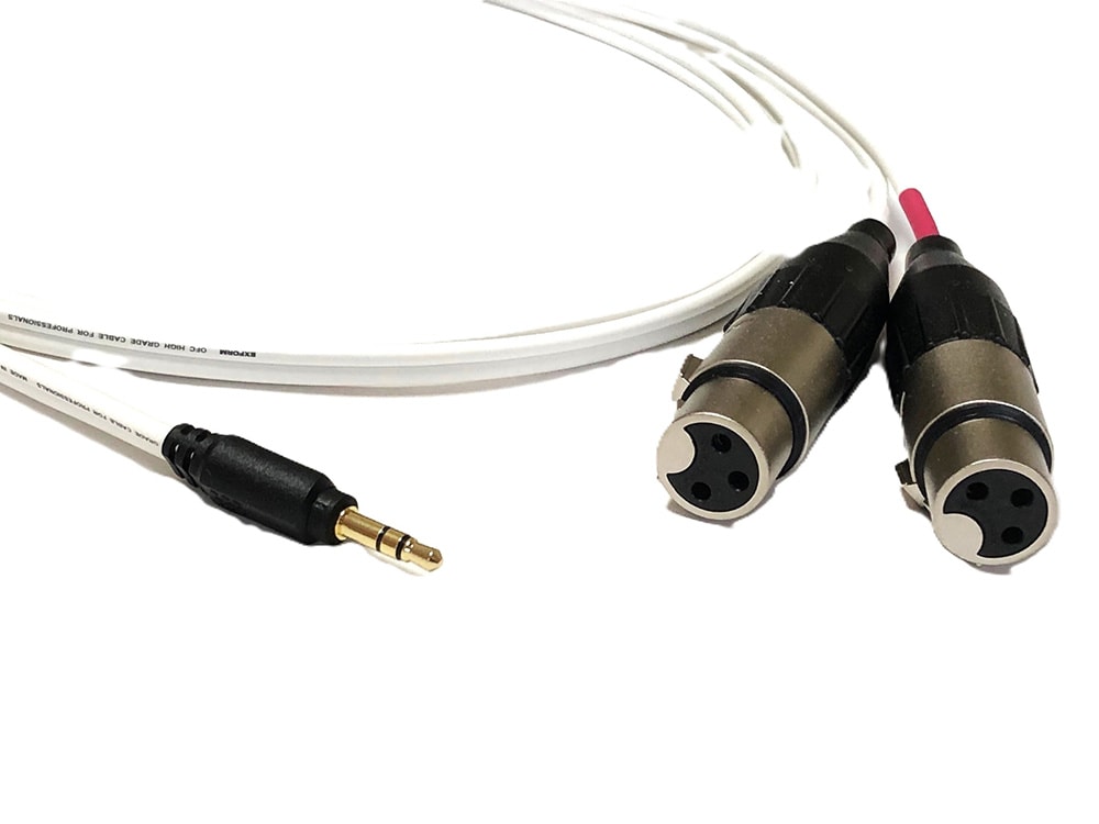 DJコントローラーやDJミキサー、レコーディングミキサーなどのXLR端子から出力される音声を、アンプ内蔵スピーカーなどのミニステレオプラグのインプット端子に接続するのにオススメな高音質ケーブルです。端子形状は片側が3.5mmステレオミニフォンオス、分岐側はXLR(メス)の二又になっています。