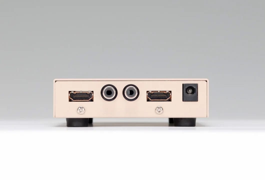 ・HDMI規格準拠信号(エンベデット音声最大8chを含む)または24ビットフルカラーDVIRev1.0規格準拠信号:ピクセルクロック25MHz~165MHzかつ、水平アクティブ画素640~2048、垂直アクティブライン480~1152までの、表示機器がEDIDデータにて要求する映像信号に全自動変換対応。垂直リフレッシュレートは59.94Hz固定 (D3、D4、D5解像度のHDMI信号および、VGA@60~UXGA@60、WUXGA@60(RB)、2048x1152(RB)の信号へ自動出力対応)