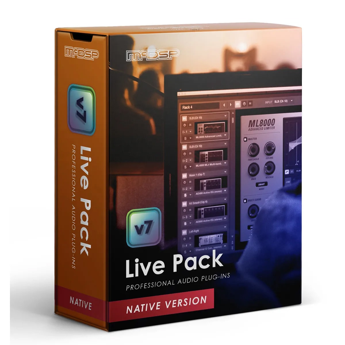 Pro Tools HDシステムにおいて、定番といわれるほど世界中のエンジニアに愛用されるMcDSPのプラグイン。 その"グリーン色"のプラグインの人気は、スタジオグレードのサウンドと能力、使い勝手をライブ・システムに持ち込んだAvid VENUEシステムにおいても同じです。 McDSPのHDプラグインは(Synthesizer Oneを除いて)全てグリーン VENUEへ完全に対応しています。 LIVE PACK IIは、AAX DSPフォーマットのAvid VENUEシステムにおいて最適なプラグイン12種類を収録したお得なバンドルです。6034, 6050, AE600, Channel G, DE555, EC-300, FutzBox, ML4000, ML8000, SA-2, NF575, NR800が収録されています。