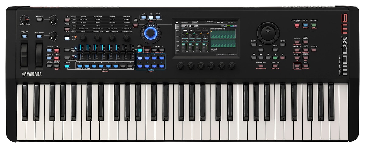 パフォーマンスごとに8つのパートをコントロールするための、専用のパート選択ボタンとシーン選択ボタンが用意されていますMODX Mのノブ、スーパーノブ、ピッチベンド、モジュレーションホイール、そしてサウンドエンジンが高解像度化されました。高解像度化により、MODX Mは従来モデルよりもスムーズなパフォーマンスを実現します。