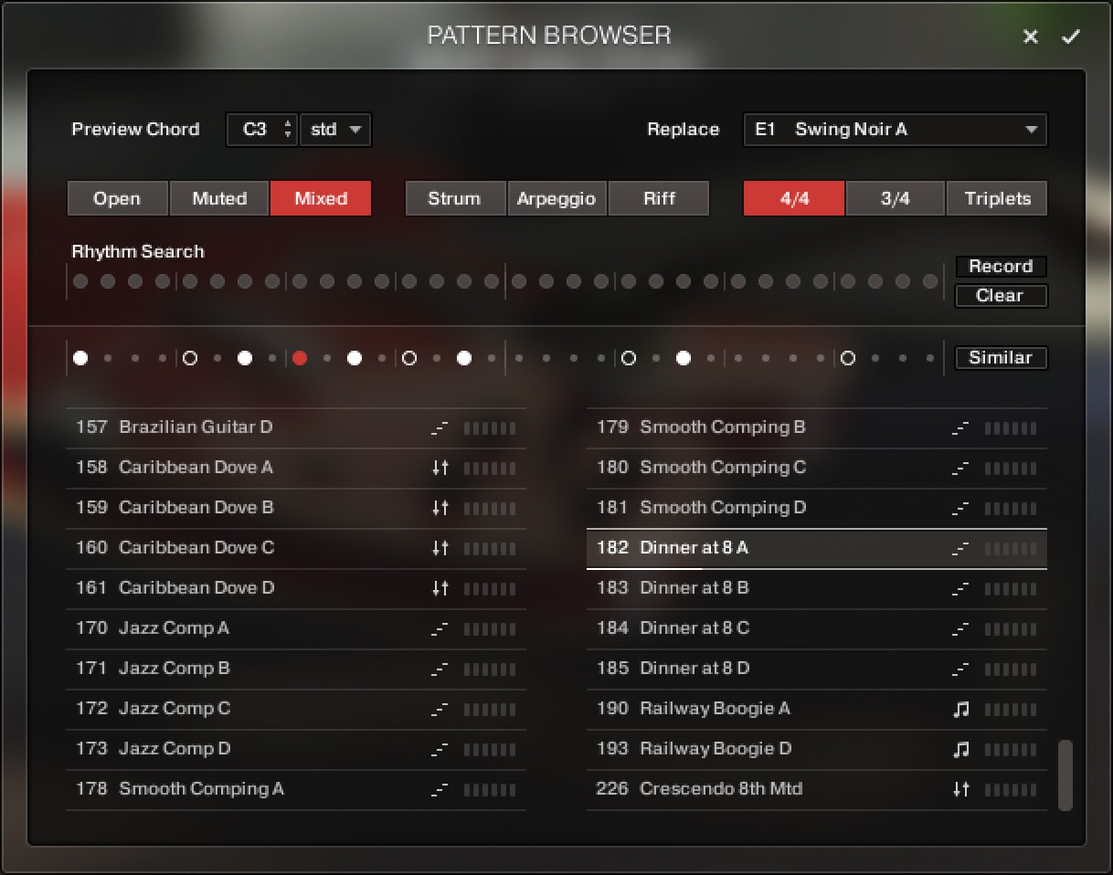 スタイルの異なる数百種類のグルーヴを搭載したパターンモードと、1音ずつ丁寧に表現できるメロディモードの2つのインストゥルメントを切り替えられます。両者を組み合わせてフルアレンジを構築したり、コンピングとソロを自由に行き来したりすることも可能です。ソングライティング、ビートメイキング、フィルムスコアリングなど、あらゆる制作シーンに最適です。