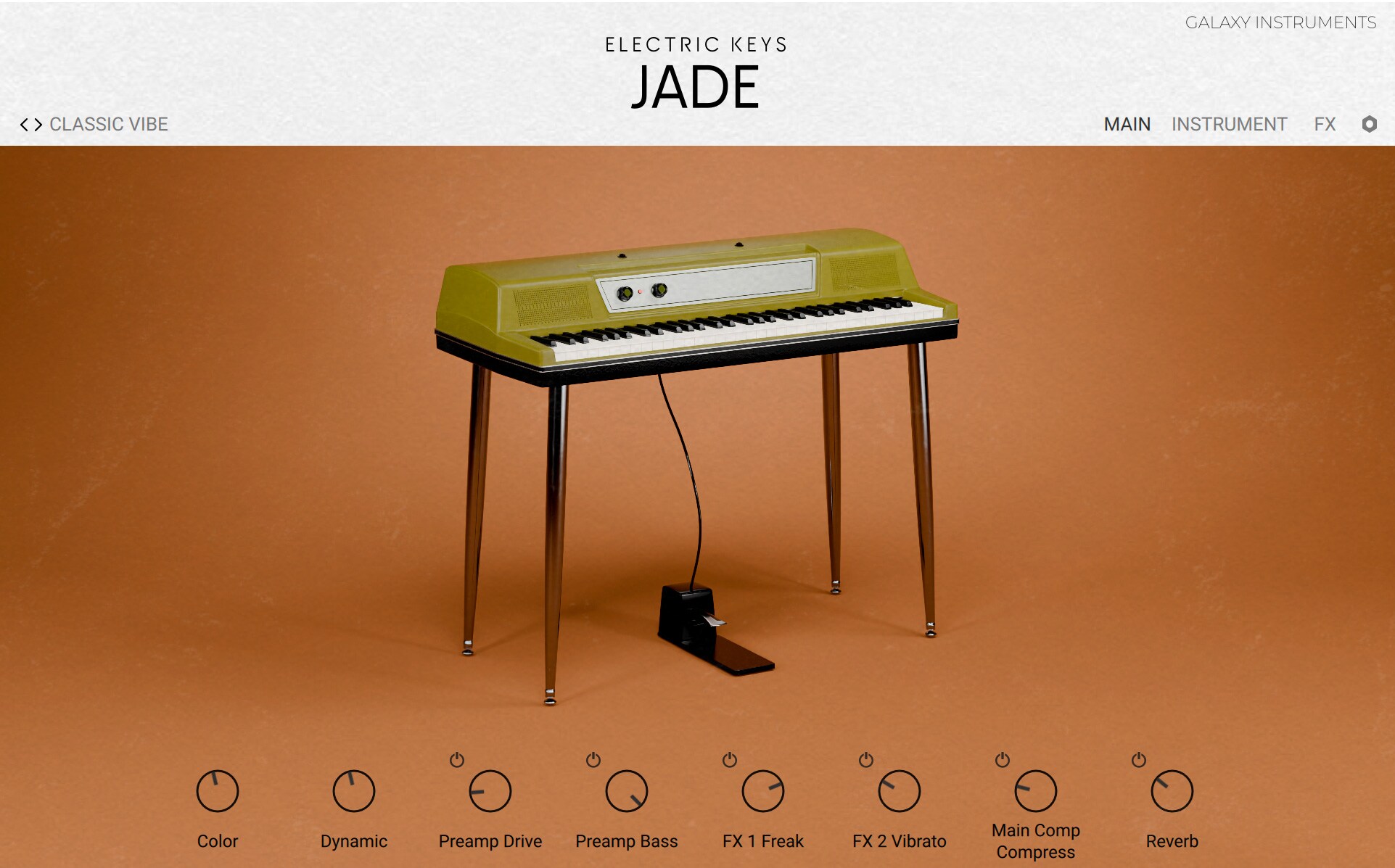 クラシックなソリッドステート・リードピアノを忠実に再現した Electric Keys ? Jade は、パンチの効いたサウンドと鋭いアタック、そして個性あふれるダイナミックな響きを生み出します。数々の名曲を彩ってきたそのトーンは、ファンキーなリズムや切れ味鋭いリード、リッチで表情豊かなコードワークに最適。詳細なトーンコントロールとクリエイティブなエフェクトを備え、大胆で明瞭なキャラクターを持つサウンドで、ソウルフルなグルーヴからエネルギッシュなポップまで、あらゆる楽曲に力強いエッジを加えます。