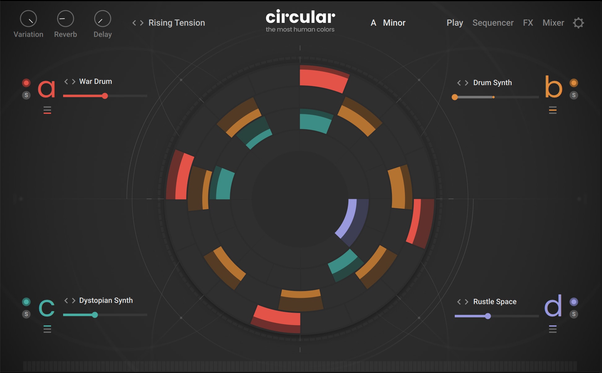 Circularは、一つの音から始まります。しかし、それは決して静止したままではありません。音は動き、変化し、命を宿したシネマティックなシーケンスへと進化していきます。4つの独立したレイヤーによって、各ステップがピッチやフィルター、エフェクトをリアルタイムに変化させるキャンバスとなります。スケッチはすぐに、動きのある豊かなスコアへと変化し、作曲のスピードを高めながら、あなただけの世界観に深みを与えてくれます。