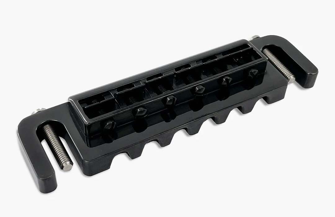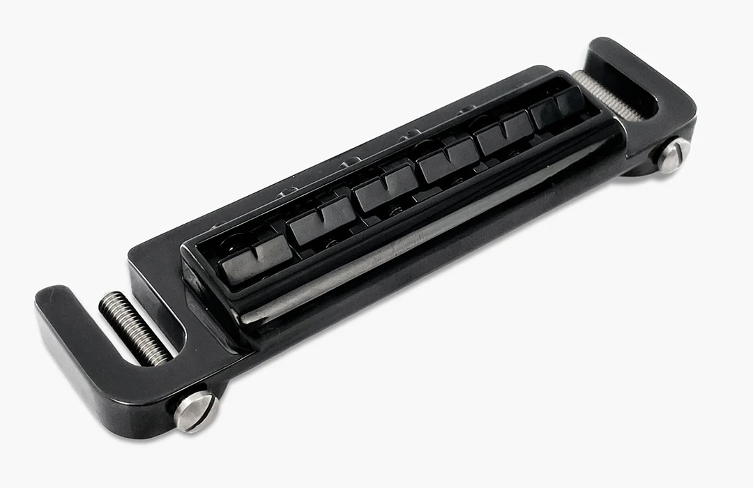 高密度な亜鉛合金から製造されており、アタック、サステイン、音の明瞭度を向上させます。当初はGibsonの「ラップアラウンド」ブリッジの直接交換品として設計されましたが、弦ごとの正確なオクターブ調整(イントネーション)を可能にしたことで、瞬く間に有名になりました。