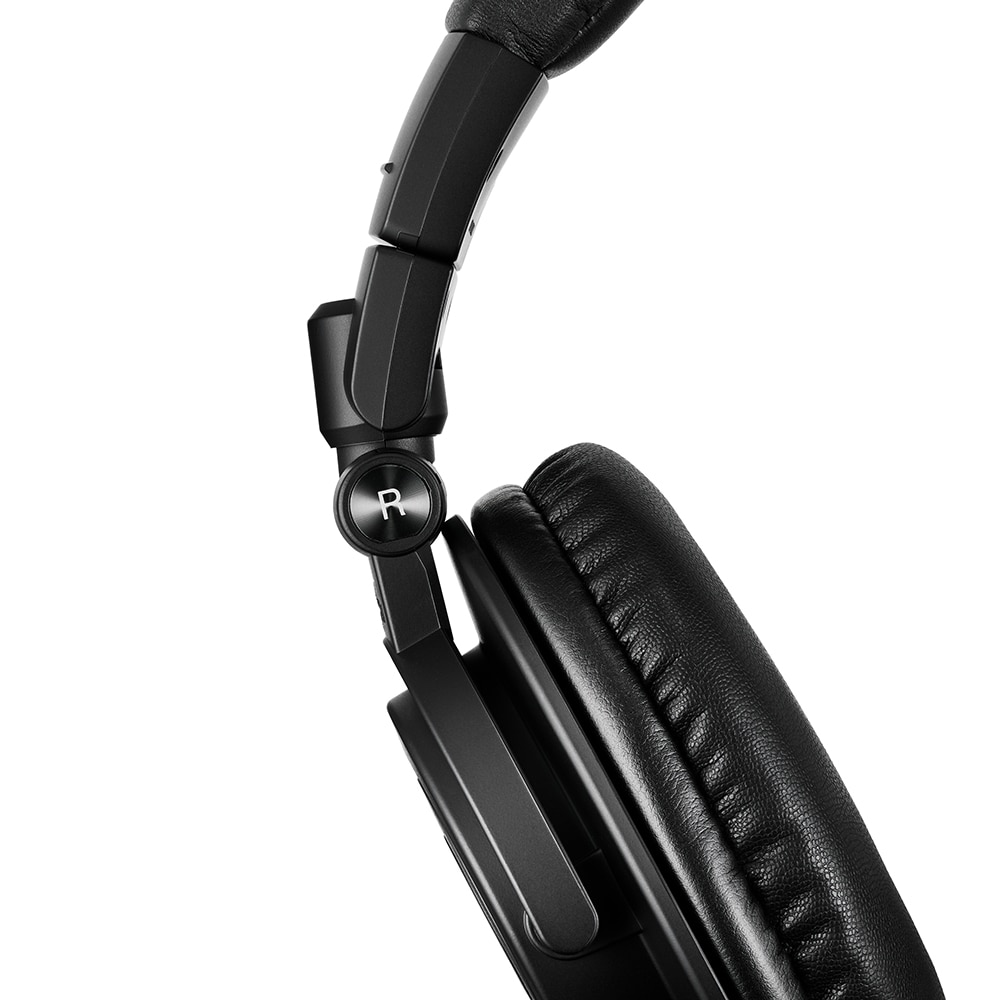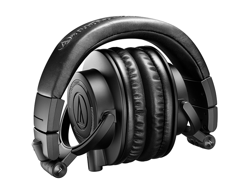 ・ヘッドホンを首に掛けた状態でもモニタリングしやすい、前後90度の反転機構を採用。