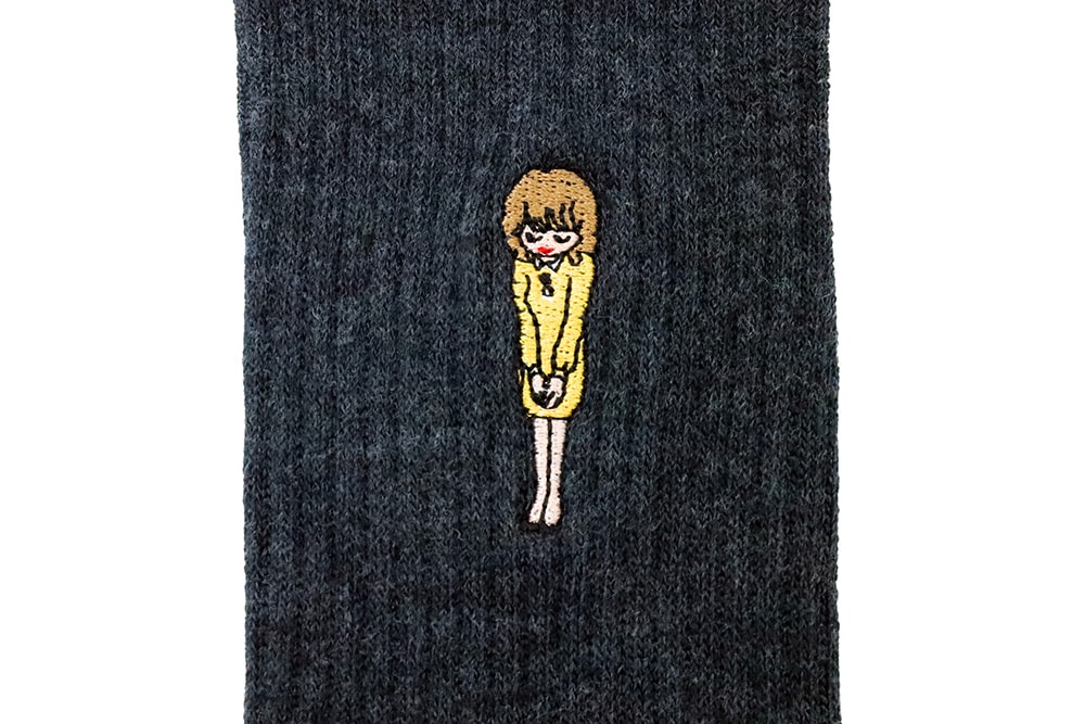 サイドにお姉さんのワンポイント刺繍が施された、とても素敵な靴下。