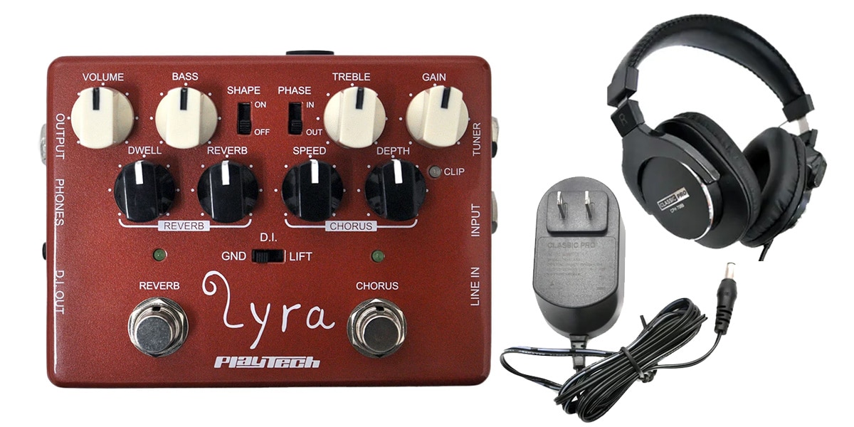 アダプターとヘッドホン付きのお得なセットです。PLAYTECHからアコギ用プリアンプが登場!2バンドEQ、リバーブ・コーラスエフェクトを搭載し幅広いサウンドメイクが可能。DI OUTに加え、TUNER OUT、PHONE OUT、LINE IN端子を搭載。初心者から上級者まで、あらゆるニーズに応える本格派の1台です。