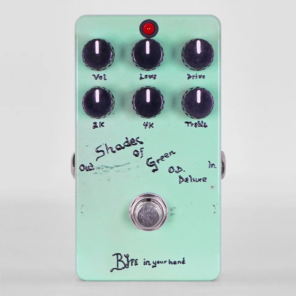 One Control/BJFE in your hand series Shades Of Green O.D. Deluxeは、オーバードライブの領域を超えて音色をコントロールすることのできるエフェクターです。豊富なコントロールにより、様々なアンプとギターに合わせ、ブーストからオーバードライブ、ディストーションの領域までサウンドを調整することができます。これにより、あらゆるジャンルでエッジの効いたディストーションに近いトーンからオーバードライブ、アンプをプッシュするブーストまで、広く音色を作ることができます。
