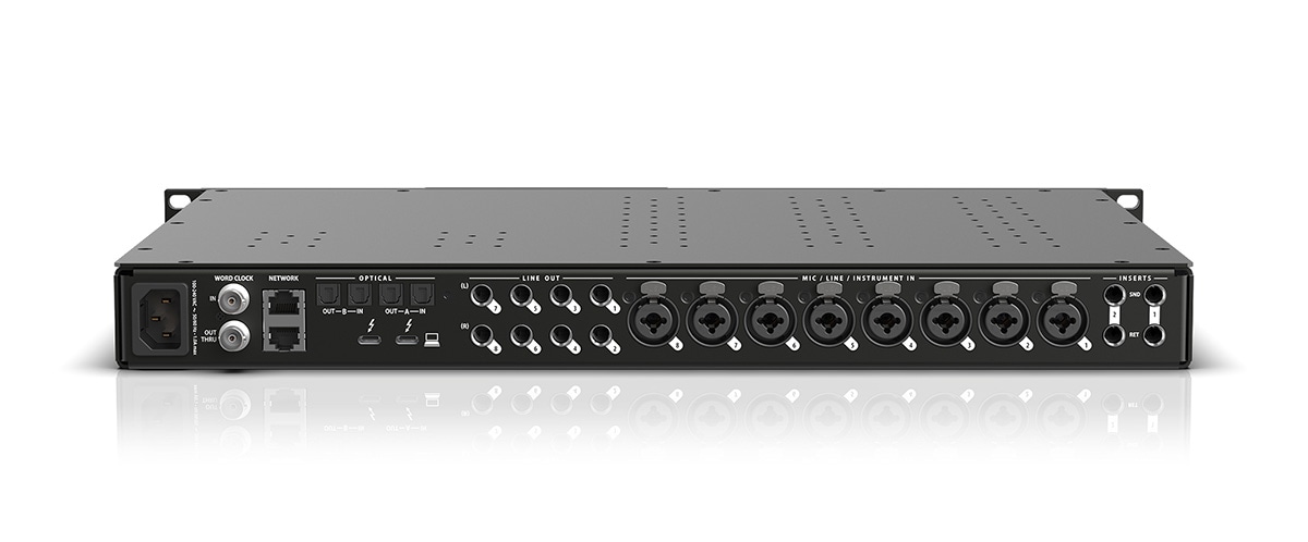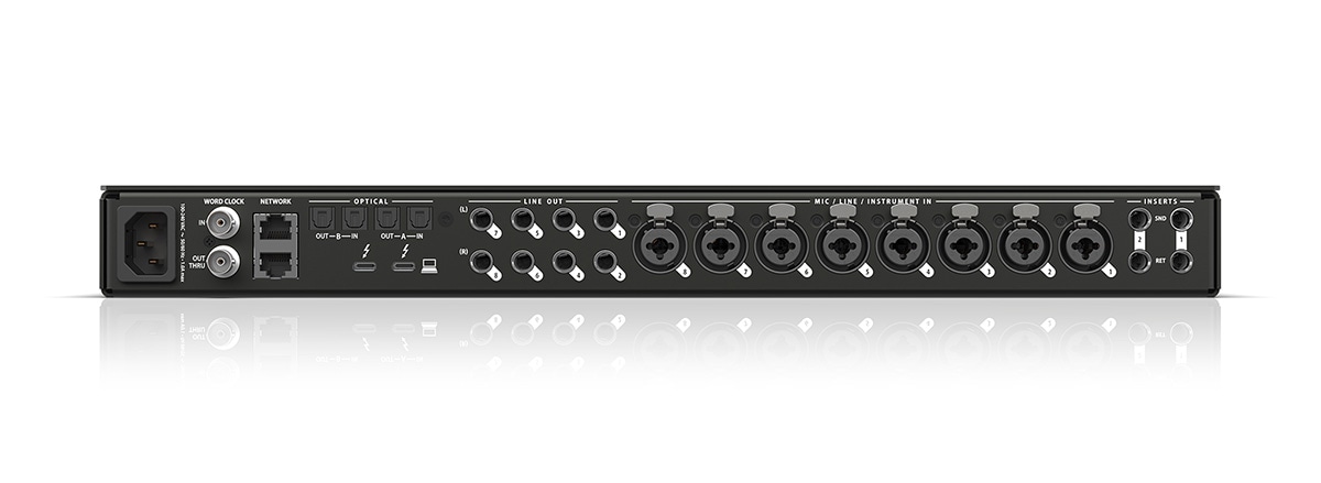-114 dB THD+N、118 dBのダイナミックレンジ、-129 dBu EIN性能により、レコーディング素材を最も忠実かつ自然な形でキャプチャーします。各マイクチャンネルには個別プリアンプゲイン、パッド、48Vファンタム電源を搭載し、コンピューターやiOSデバイスからのリモートコントロールが可能。各コンボジャックは、DIトラッキングやリアンプ用に1/4インチのハイインピーダンスTSギター入力を交互に提供します。