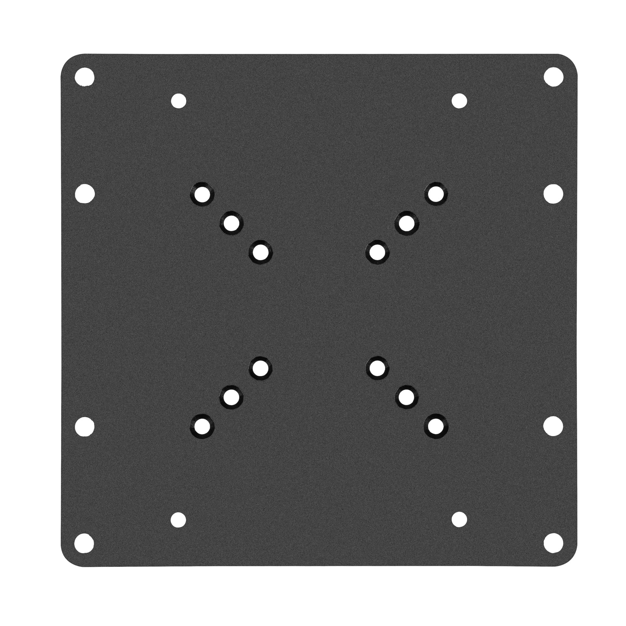 VESAマウント変換用のプレート「GH-VCPA-BK」。モニターアーム側の50/75/100mm規格を、200×100/200×200の横長VESAに変換でき、大型のテレビやディスプレイの設置に対応。耐荷重30kgで安心でき、ネジ3種+スペーサー付属。堅牢な2mm厚プレート&粉体塗装仕上げで、安定性を重視したアクセサリです。