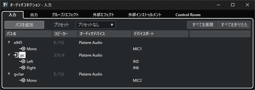 ASIOインプット:8ch