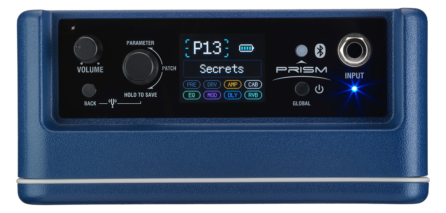 Laneyの技術を集結した自宅練習用ギター・ベースアンプであるPRISM MINIは、17のアンプ、32のエフェクトを搭載。デュアル1.5インチウーファーの3W+3Wのステレオ出力で驚くほどコンパクトなボディから、緻密で部屋を満たすようなサウンドを提供します。USB Type-C による充電式のバッテリーは最大7時間の連続駆動に対応し、自宅での使用はもちろん、ハイクオリティなサウンドを手軽に持ち運ぶことができます。