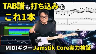 Jamstik Core MIDI Guitarを使用してみて、特に面白いと思ったポイントは2つ。1つはギターを弾く感覚のままで他の楽器の音色を演奏・録音ができること。もう1つは、ギターを弾くだけで正確なTAB譜が作成できることです。