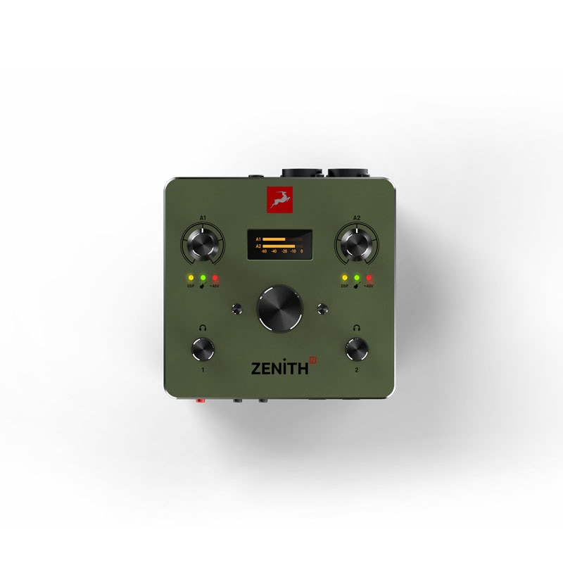 Zenith 2 は、プロクオリティのサウンドをシンプルなセットアップで実現する、2×2 USB-C オーディオインターフェイスです。123 dB の広大なダイナミックレンジを実現する高品位 AD/DA 変換と、Orion Studio SC にも採用されるディスクリート 6トランジスタ・プリアンプを搭載。75 dB のゲインにより、ゲインブースター不要で多様なマイクを駆動できます。