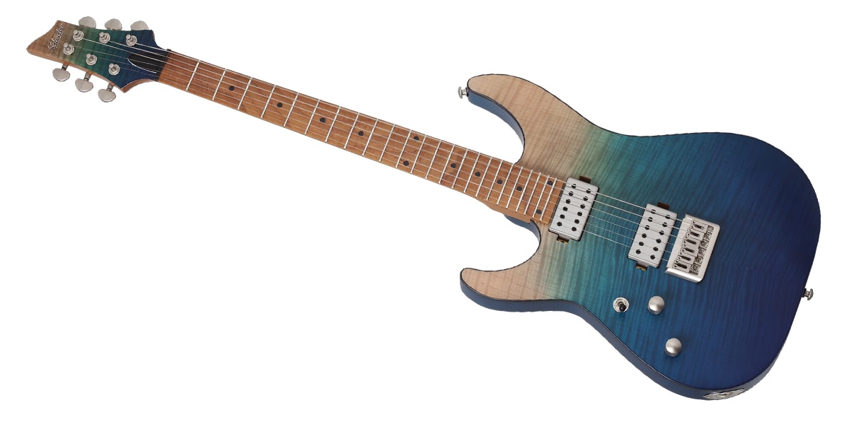 優れた演奏性とルックスにおいて、高いコストパフォーマンスを発揮するエレキギターです。美しいキルトメイプルトップを採用し、Schecter Diamond Plus?ハムバッカーを搭載。パワフルかつオールマイティに仕様できるサウンドを発揮します。セットネック構造/24フレット仕様。