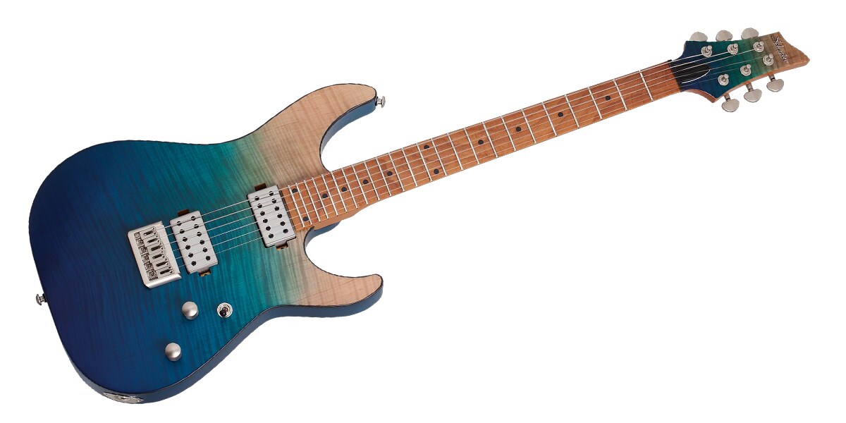 優れた演奏性とルックスにおいて、高いコストパフォーマンスを発揮するエレキギターです。美しいキルトメイプルトップを採用し、Schecter Diamond Plus?ハムバッカーを搭載。パワフルかつオールマイティに仕様できるサウンドを発揮します。セットネック構造/24フレット仕様。