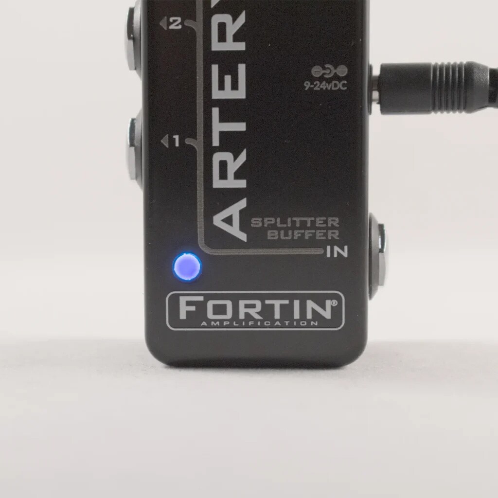 ARTERYは非常に低電流回路を採用しており、DCインレットから9~24VDCの外部電源で動作します。DCインレットに間違った向きのアダプターを接続した場合でも、MOSFET保護機能により内部へのダメージを防ぎます(ペダルは起動しません)。