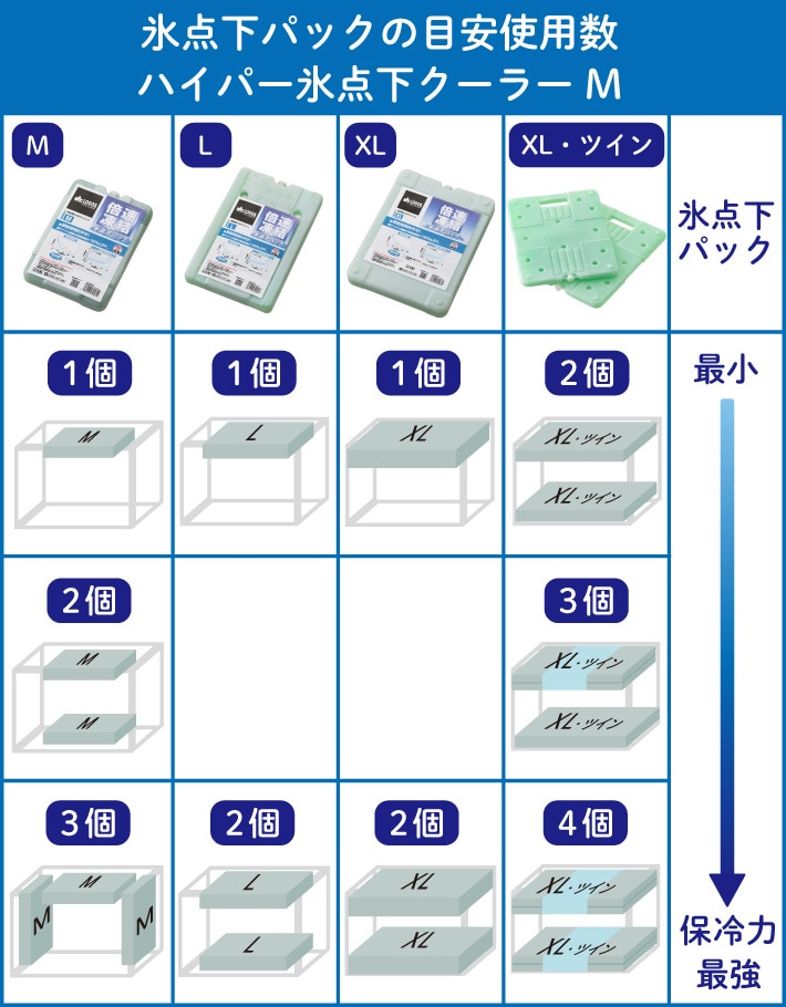 保冷剤は別売りの「氷点下パック」をお勧めします。もちろん、一般保冷剤も使用できますが、「氷点下パック」との併用で、保冷力が向上しアイスクリームが最大11時間保存できます。